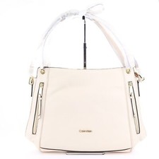 Calvin Klein Womens Melanie Beige Leather Hobo Handbag Purse Large BHFO 9880 for calvin klein melanie pebble satchel