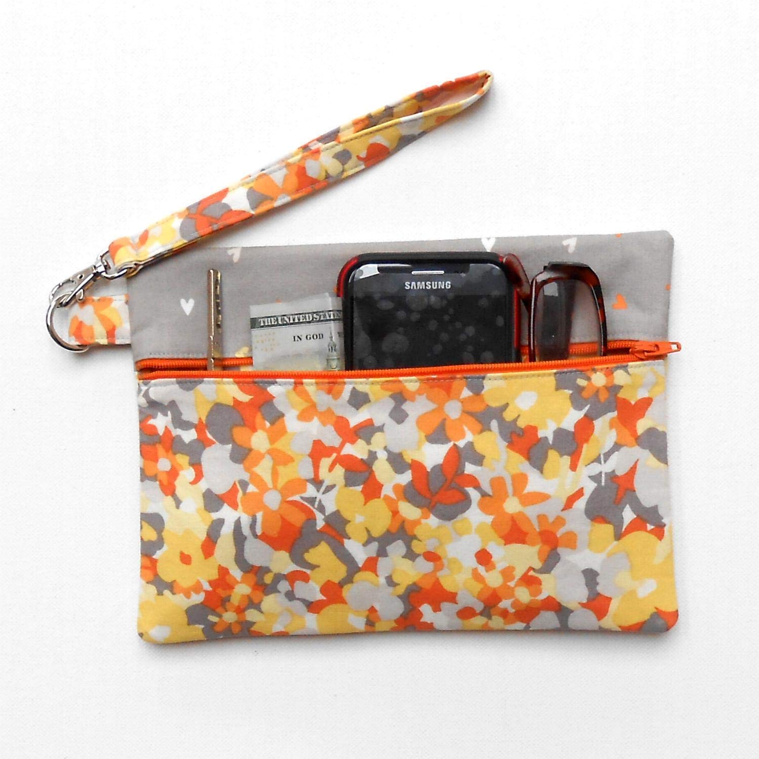 Yellow Floral Wrist Purse, Orange Grey yellow floral bag