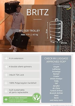 Britz- Luggage Suitcase Hardside Hard air china hand luggage size