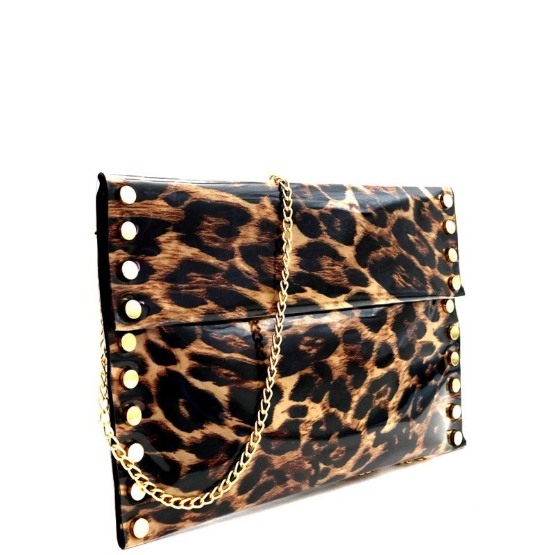 Cross Body Clutch Pouch Bag clear leopard purse
