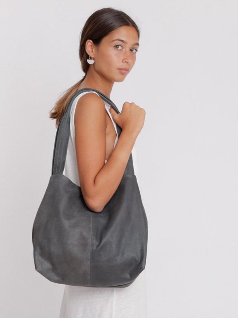 Grey Leather Tote Large Leather Bag
