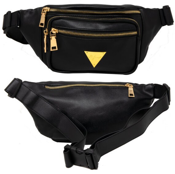 Black Faux Leather Fanny Pack bum bag nabob leather fanny pack