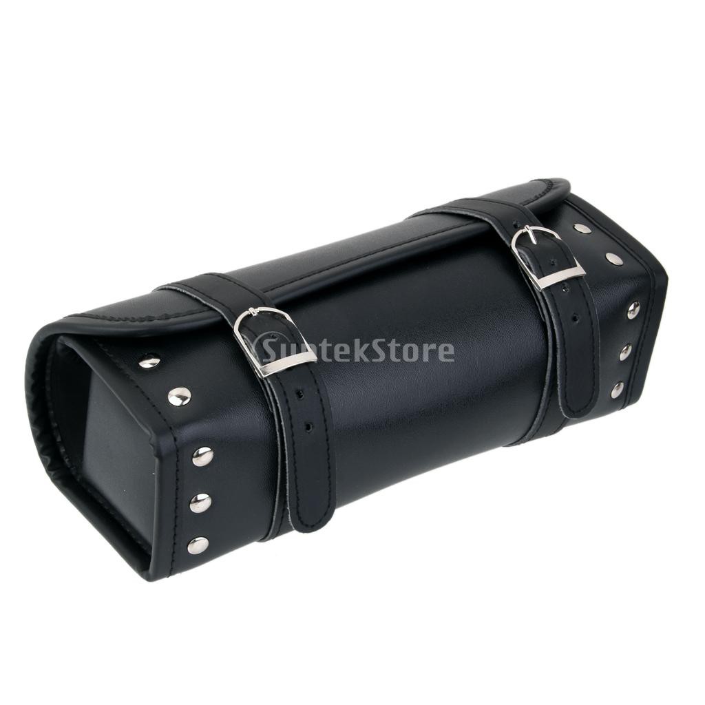 Motorcycle Pannier Saddle Pouch Faux black leather luggage bag