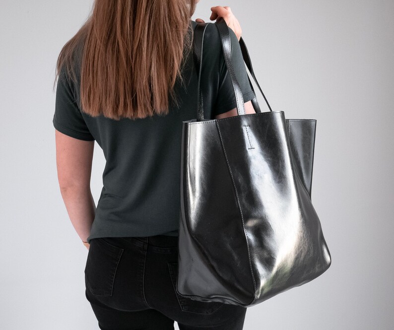 Women's leather shopper bag black black leather shopper bag