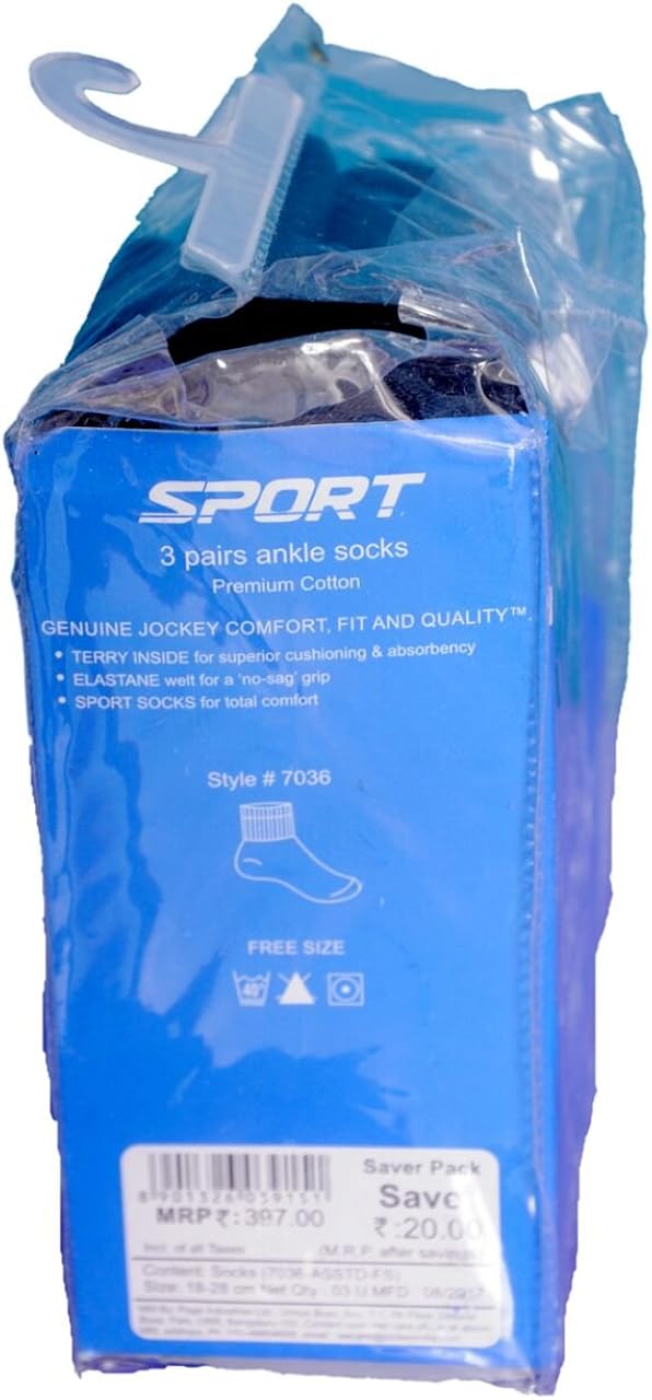 Ankle Socks Pack of 3 Grey White Black jockey sport bag