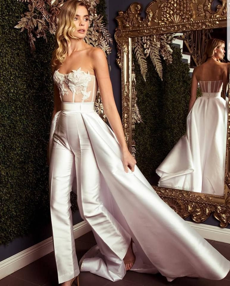 Wedding dresses, Wedding suits bridal pantsuit with train