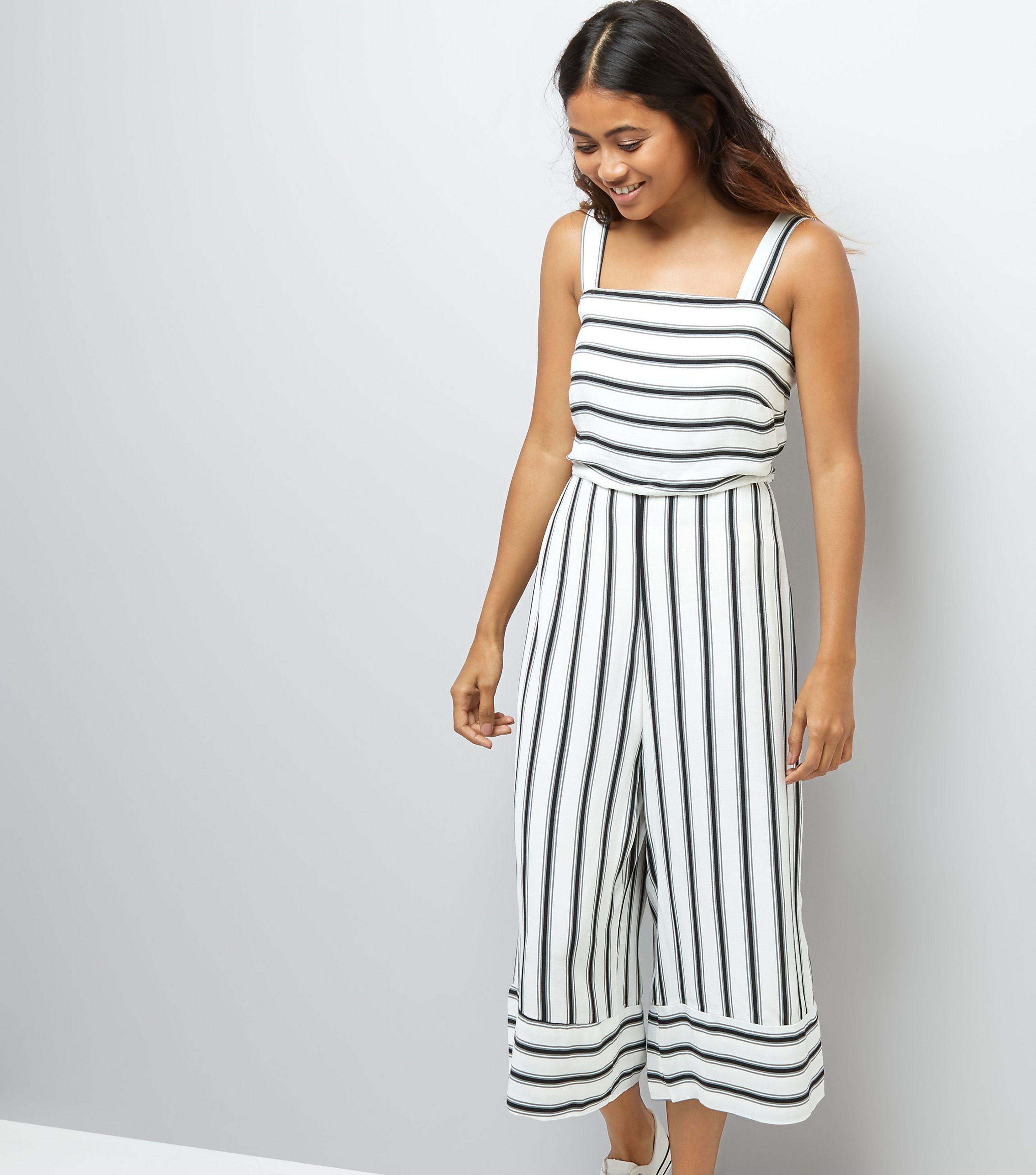 Petite White Stripe Culotte Jumpsuit new look white jumpsuit