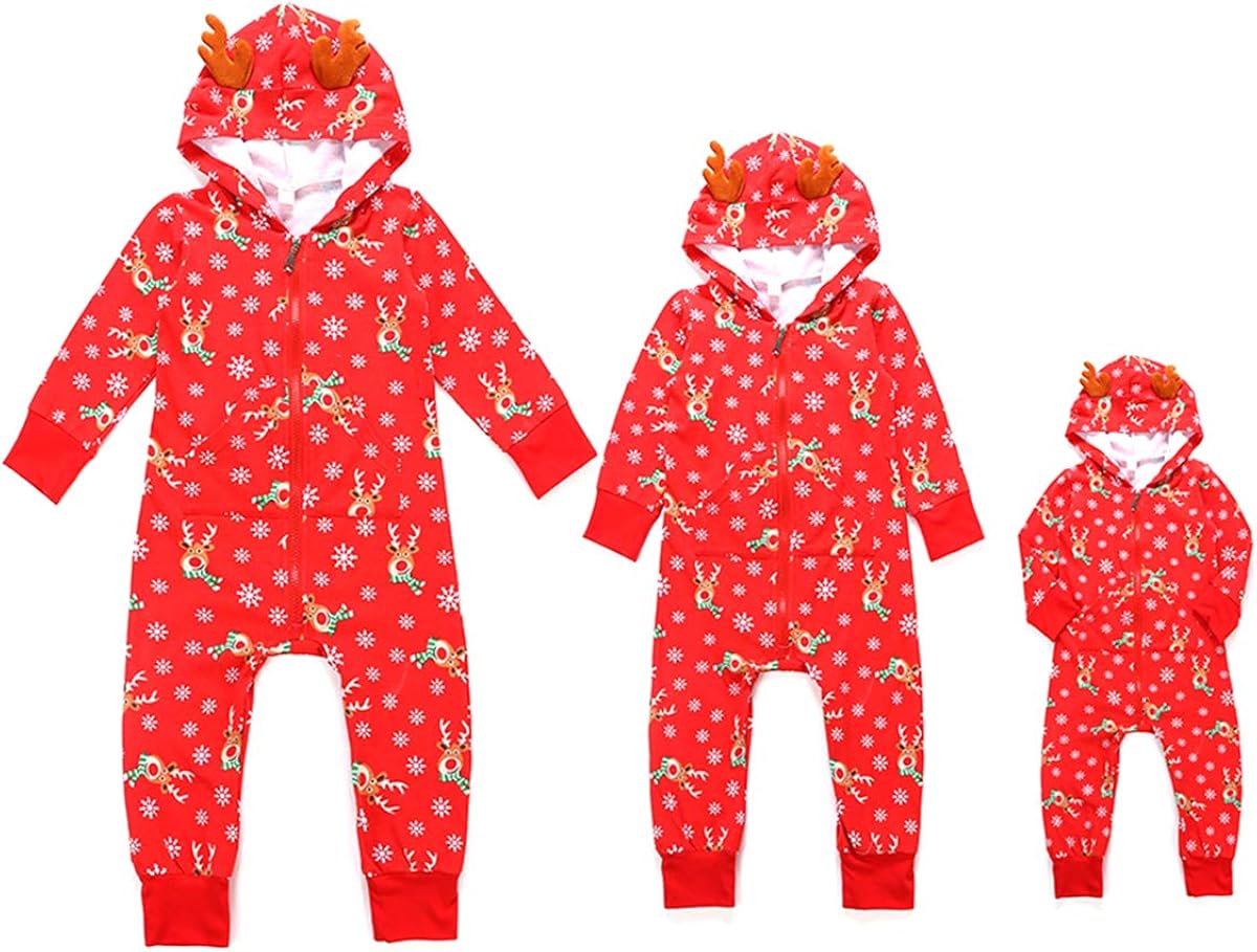 Christmas Family Pajamas Hoodie Elk red jumpsuit with hoodie
