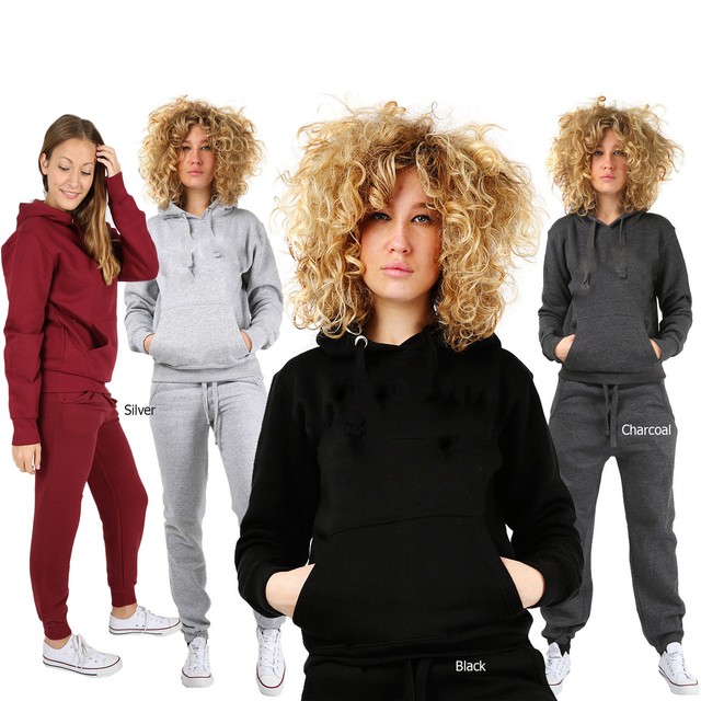 Womens Plain TRACKSUIT Pull Over Hooded womens plain tracksuit
