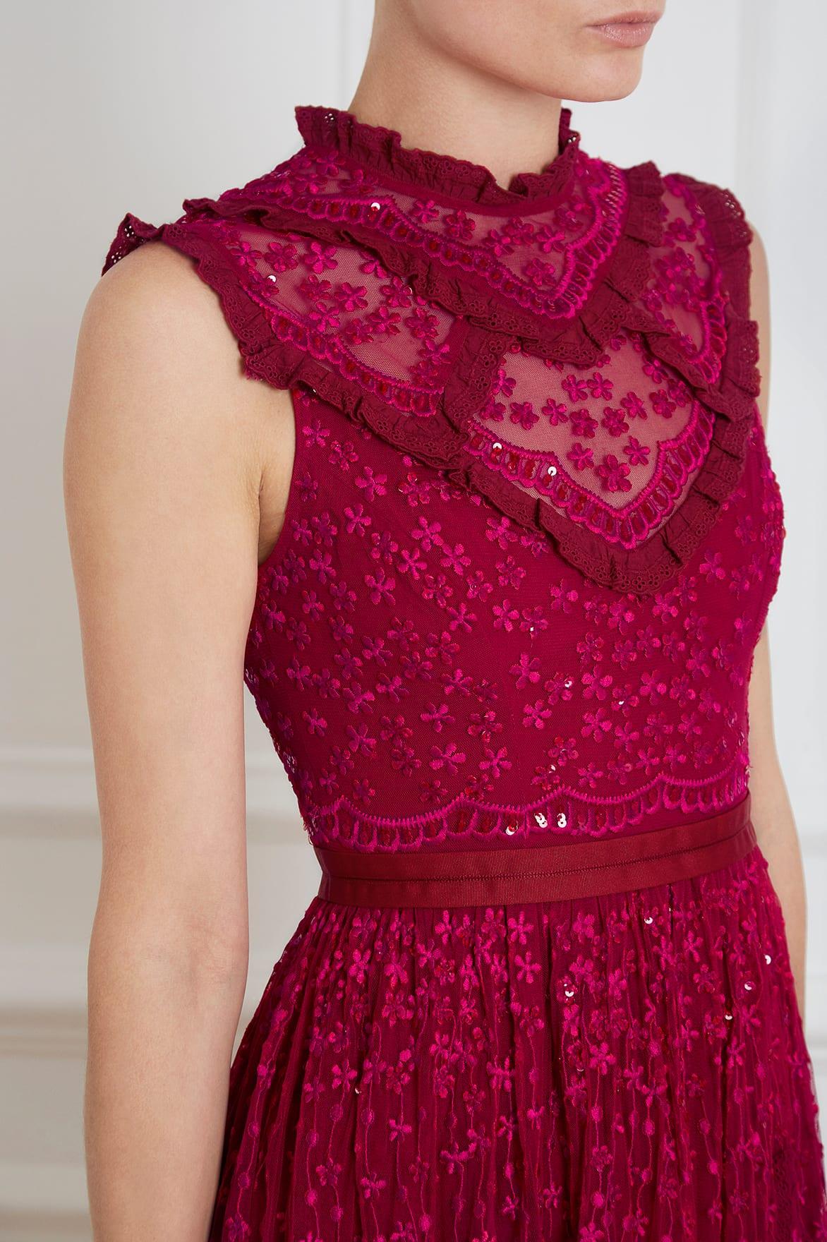 Needle \u0026 Thread embroidered v-neck gown needle and thread red dress