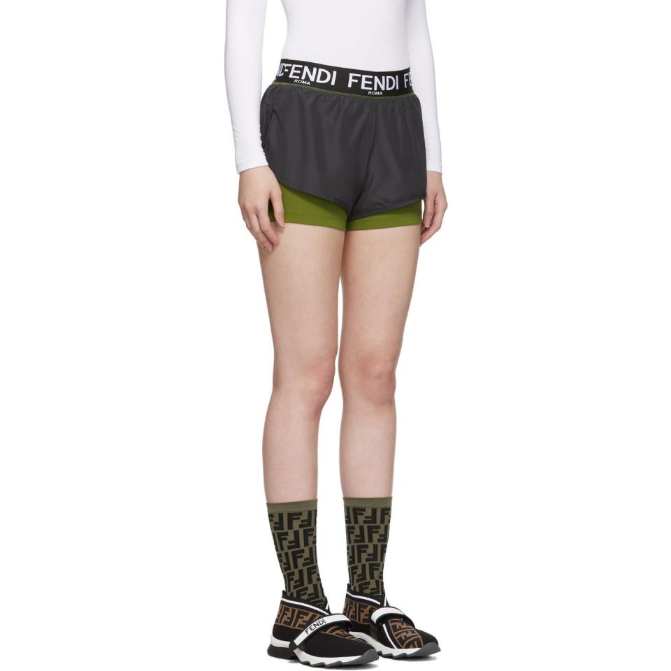 Grey And Green Underlay Shorts in Gray grey fendi shorts