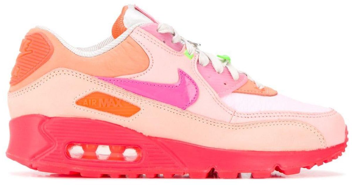 Nike Leather Pink And Orange Air Max 90 Sneakers With Layered Design And Integrated Air pink and orange air max