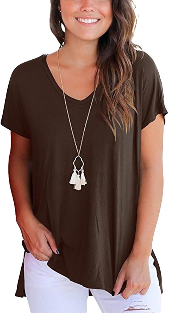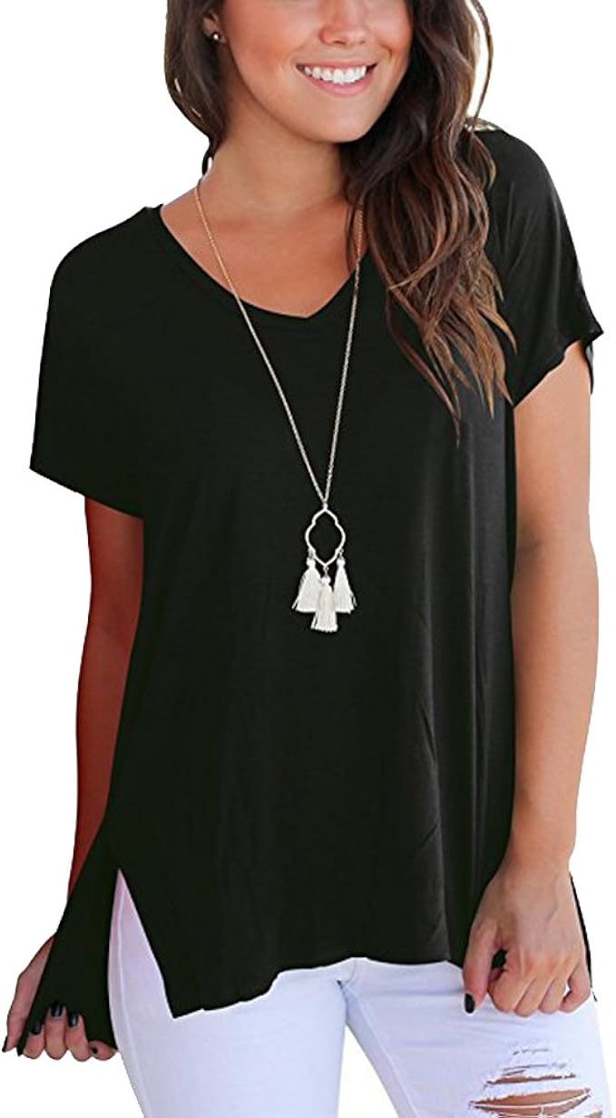 Youthny T-Shirt Lâche d'été Fentes Latérales Col en V Court Devant tee shirt femme long derriere