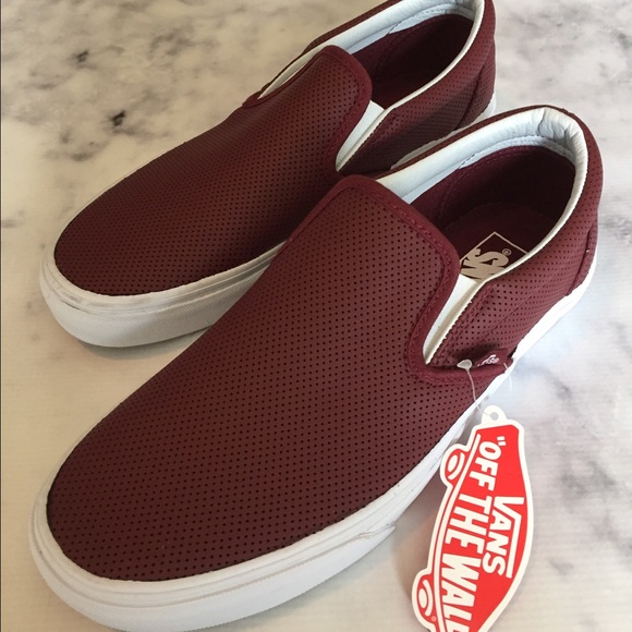 Vans Shoes | Nwb Perforated Leather burgundy leather slip on vans