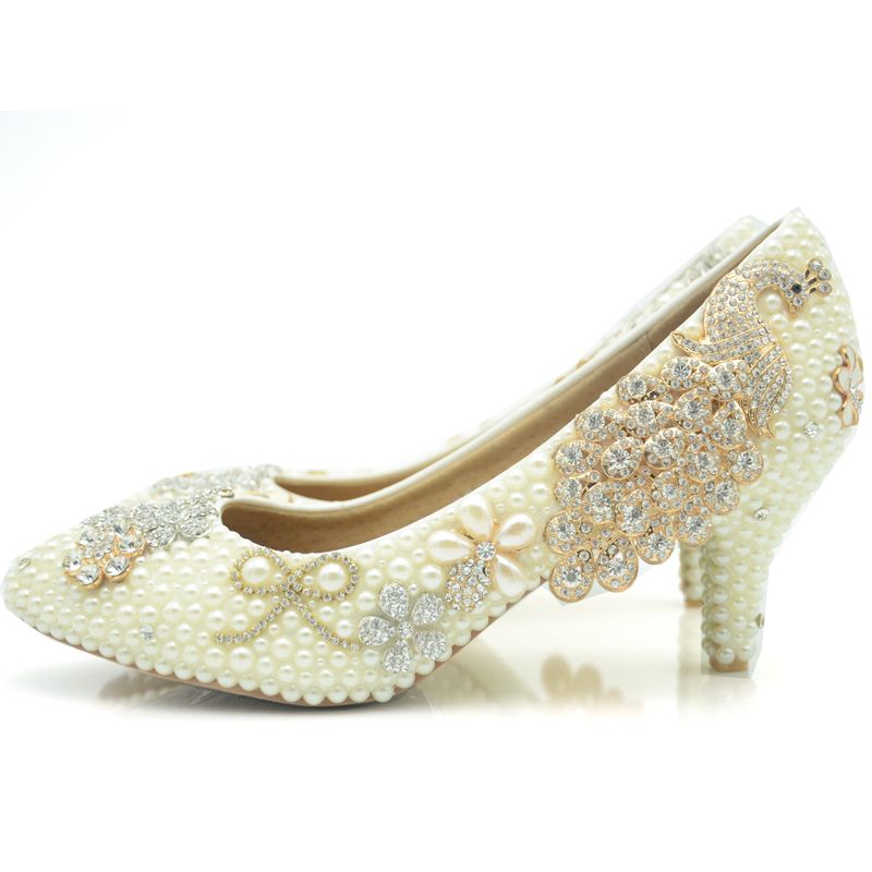 2019 Ivory Wedding Shoes Pearl Middle comfortable mother of the bride shoes