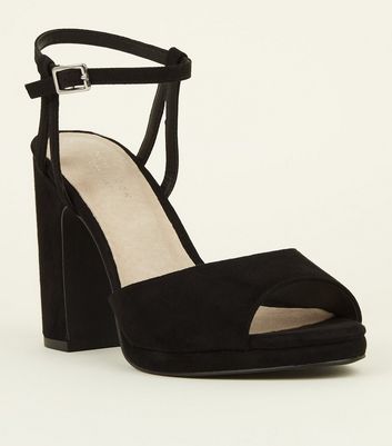 Black Comfort Peep Toe Platform Block new look comfort heels