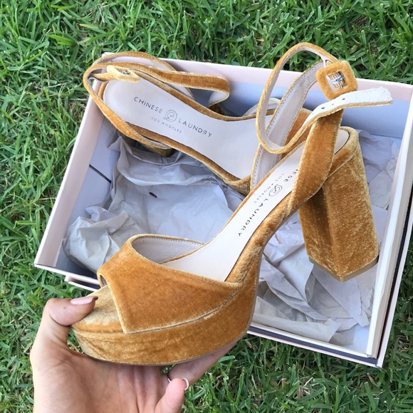Mustard Yellow Velvet Sandal Heels chinese laundry yellow heels