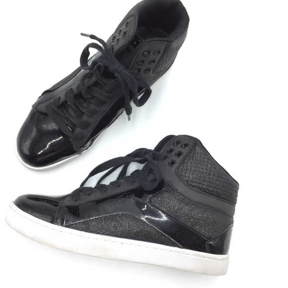 Black High Top Sneakers Patent Leather pastry black high tops
