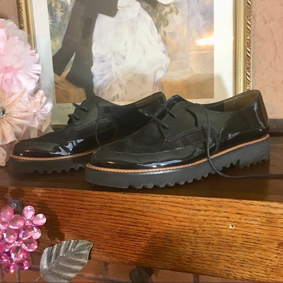 Paul Green Black Etched Leather Rubber paul green oxfords