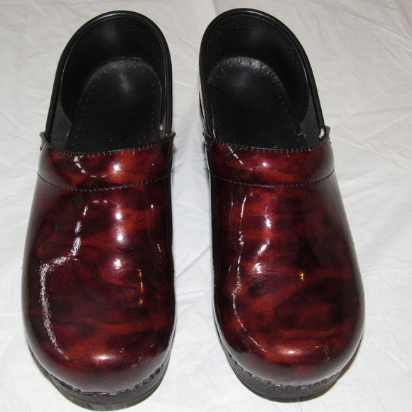 SZ 36 Patent Leather Shoes Clogs dansko burgundy patent leather clogs