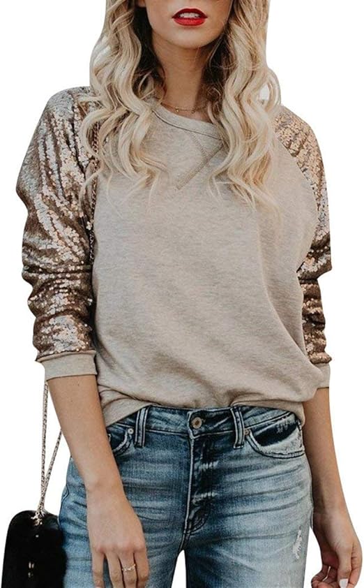 LIGESAY Camicetta da Donna A Manica Lunga con Paillettes E Maniche maglia paillettes maniche lunghe