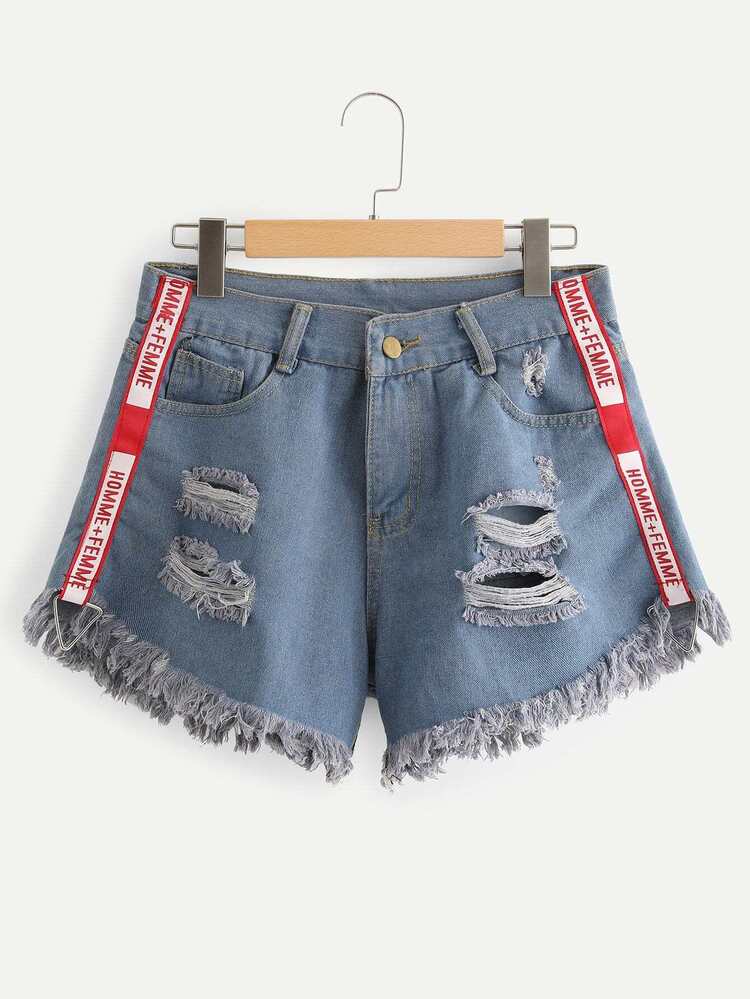 Shorts in denim con strappati e orlo grezzo | ROMWE shorts strappati