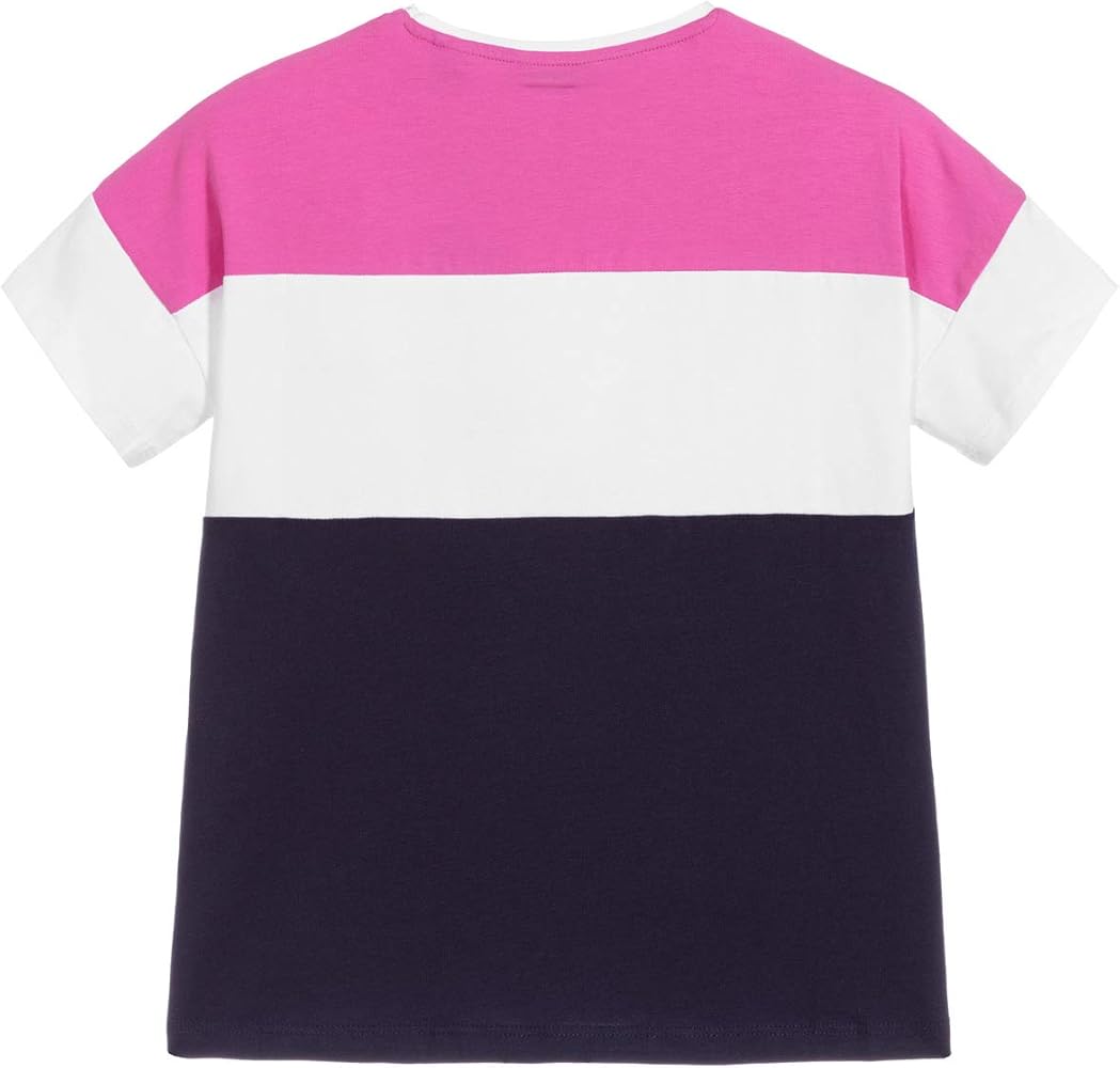 Guess, T-Shirt in Cotone Bianco Rosa e Blu con Logo Ragazza t shirt guess ragazza