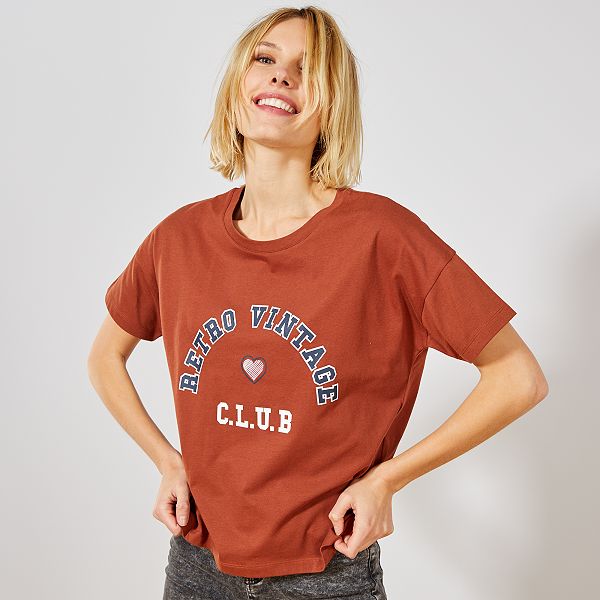 Maglietta stampa 'University' Donna - MARRONE - Kiabi - 4,00€ maglietta marrone donna
