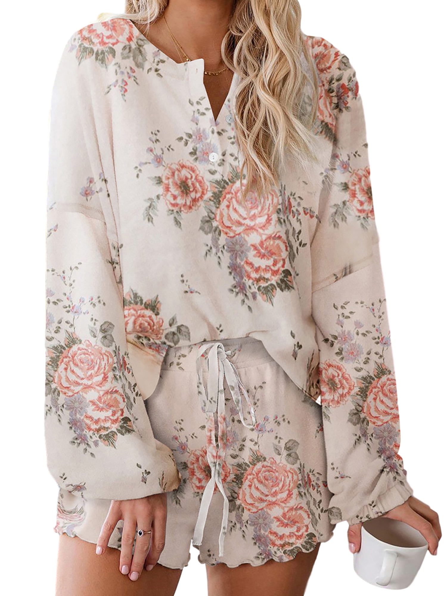 Shirt and Drawstring Shorts cream womens tracksuit