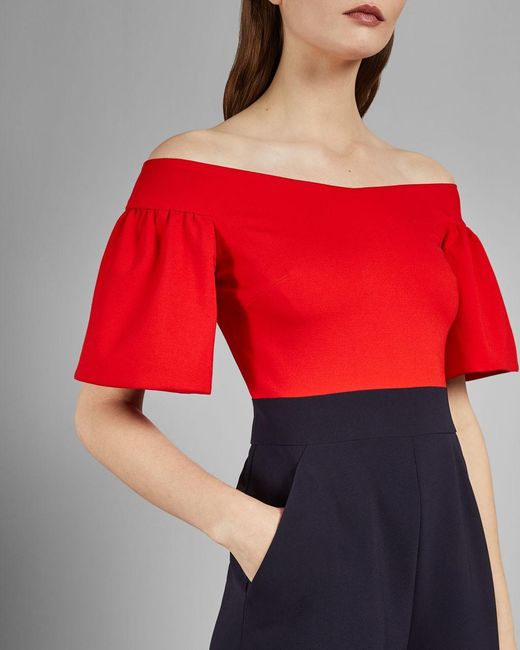 Ted Baker Synthetic Bardot Wide Leg ted baker red floral jumpsuit
