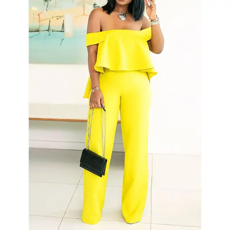 Sexy Off Shoulder Wide Leg Jumpsuit yellow wide leg jumpsuit