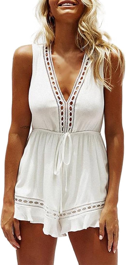 Amazon.com: Longay Women V Neck Hollow jumpsuit mini dress
