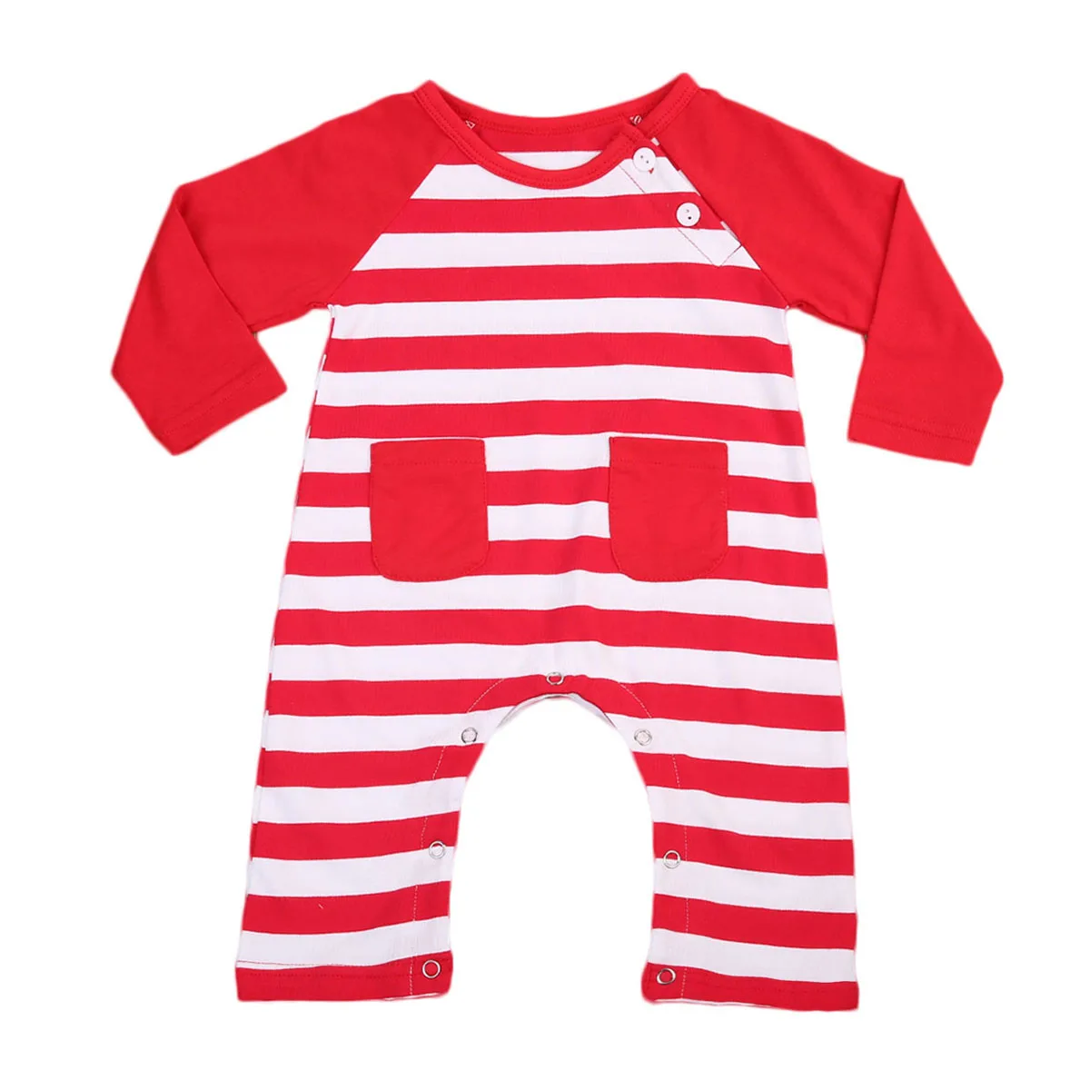 Newborn Baby Boy Girl Striped Romper red long sleeve playsuit