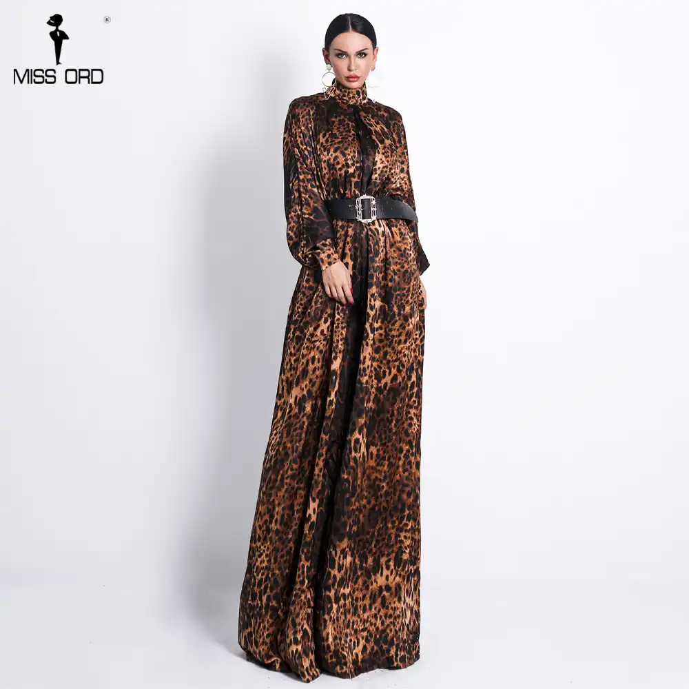 Missord 2020 Sexy Women High Neck Long long sleeve leopard jumpsuit