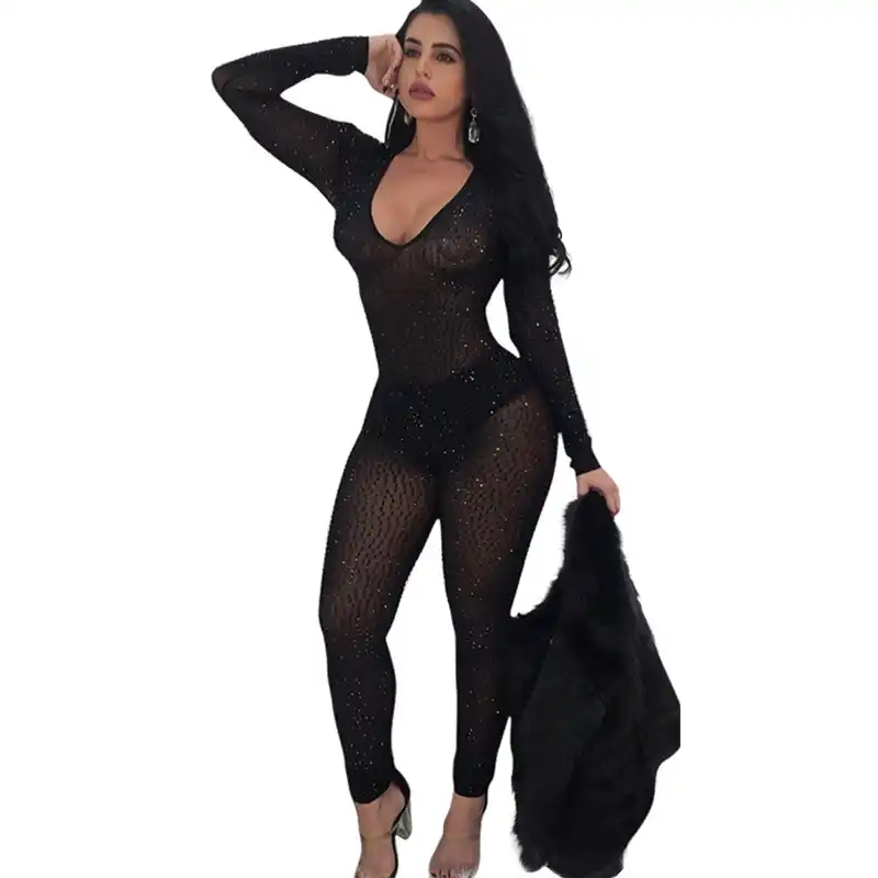Glittering Embellished Mesh Skinny glittering embellished mesh skinny jumpsuit
