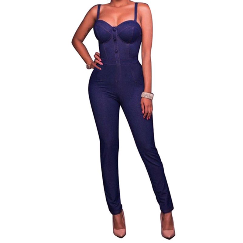 Jean Denim Jumpsuit V Neck Long Pants strapless jean jumpsuit