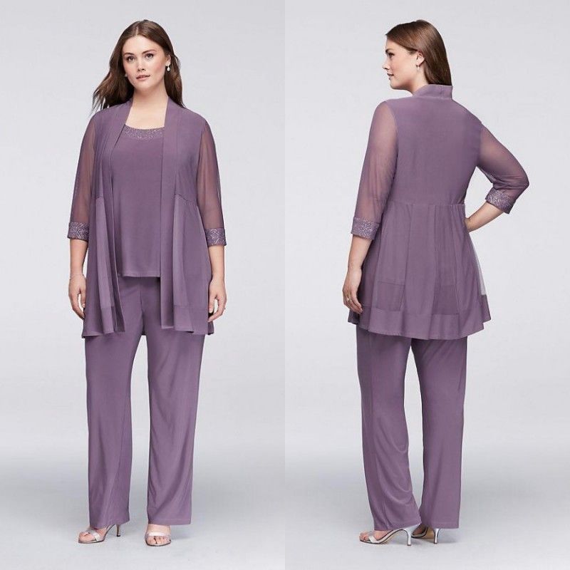 Bride Pant Suits Plus Size 3 piece mother of the bride pant suits