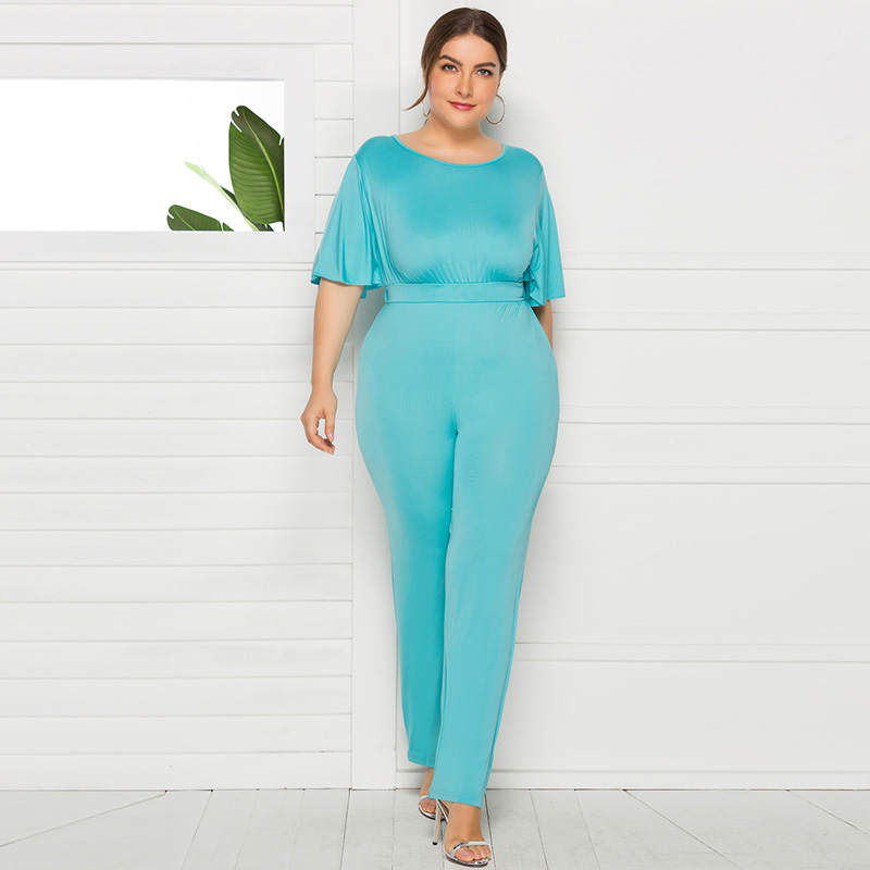 Plus Size Jumpsuit O Neck Half Sleeve high waist half jumpsuit