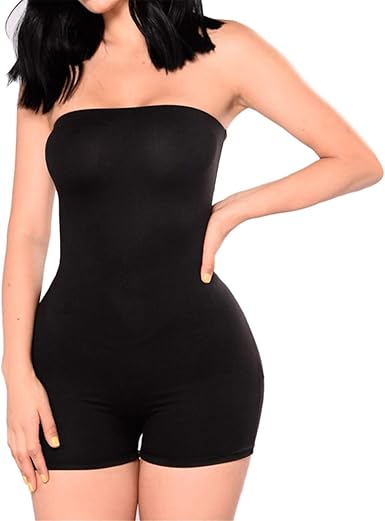Womens Strapless Tube Solid Color bodycon short romper