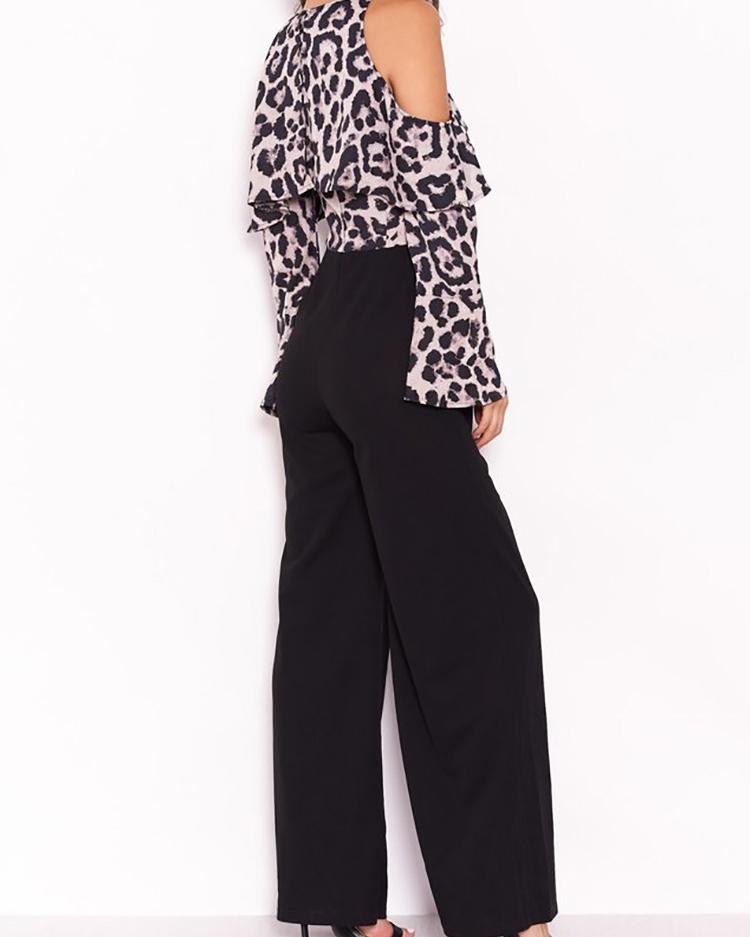 Leopard Print Cold Shoulder Jumpsuit leopard print cold shoulder jumpsuit