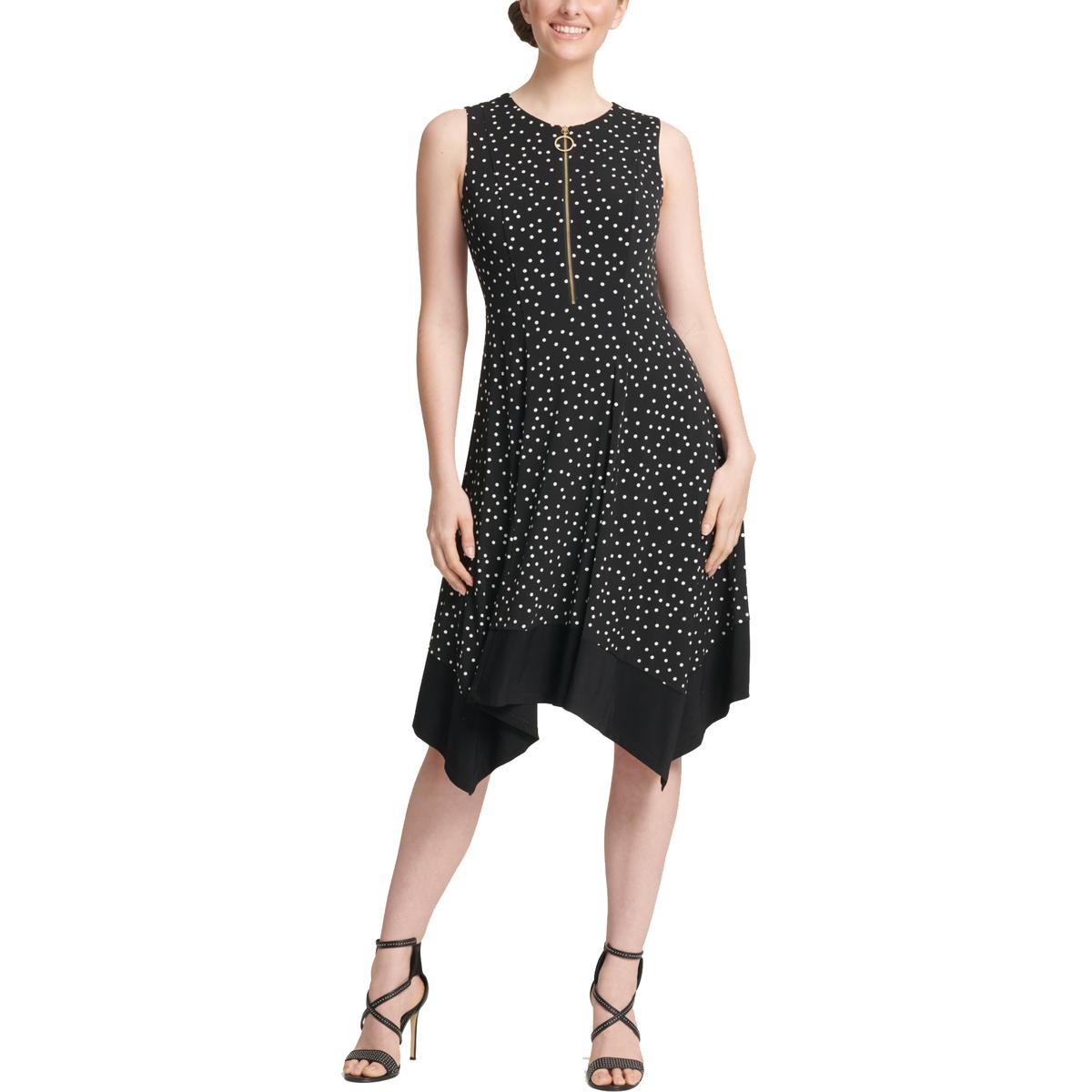 Womens Black Polka Dot Handkerchief Hem dkny polka dot dress