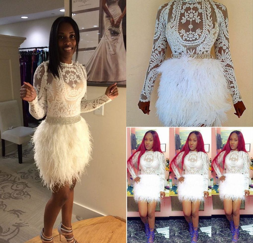 Cocktail Prom Dresses Long Sleeves white feather cocktail dress