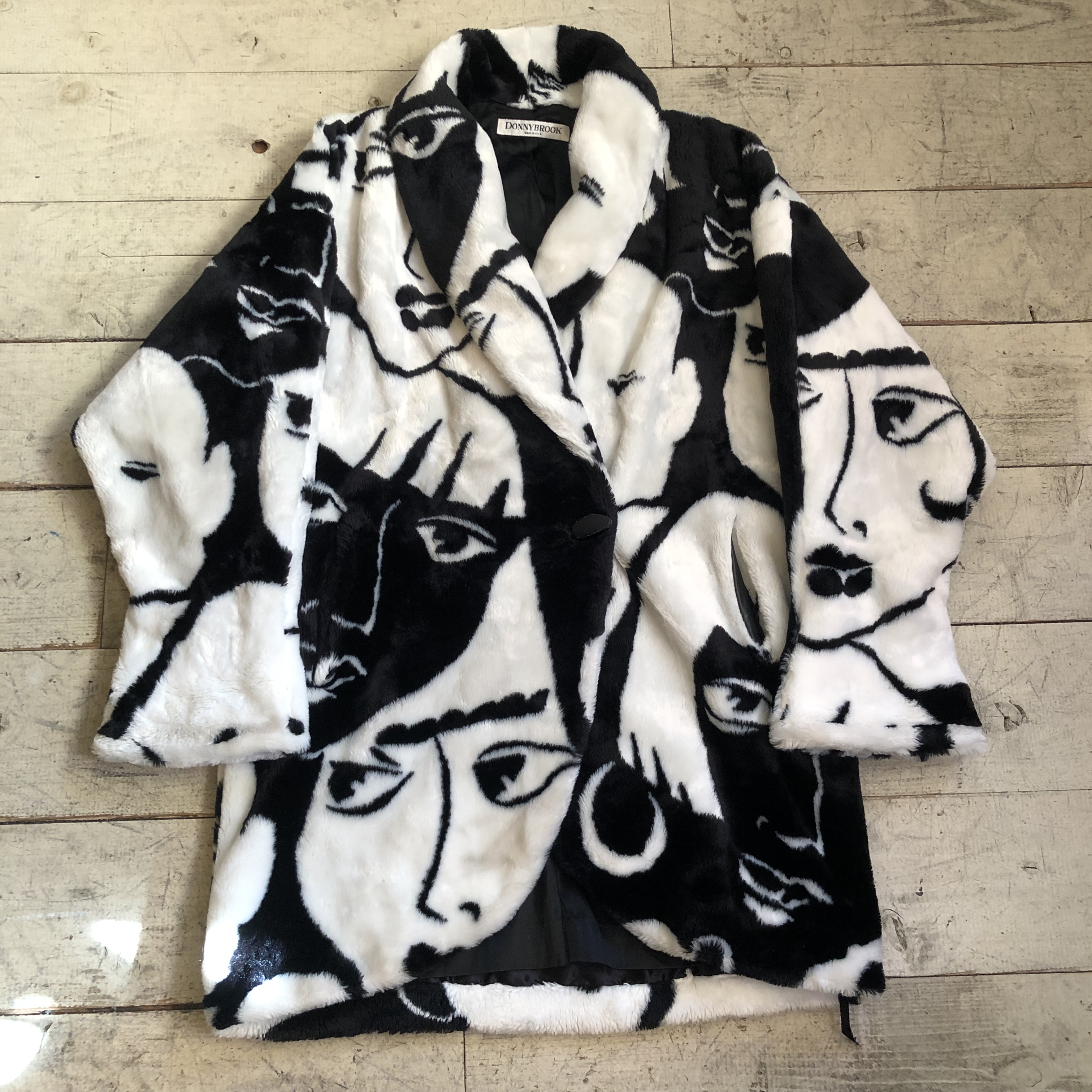 80s DONNY BROOK face pattern fake fur donnybrook faces coat